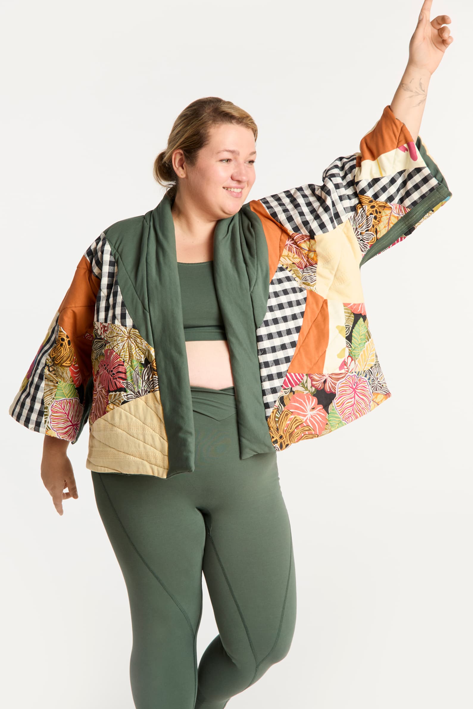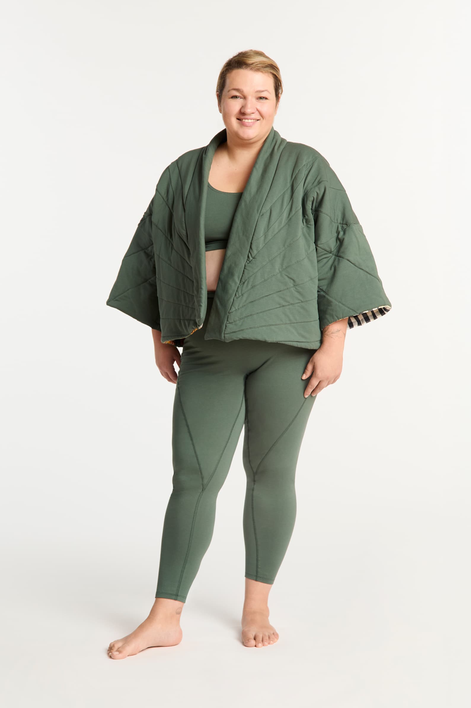 Kimona OTULE to miękkie, otulające okrycia stworzone z naturalnych tkanin i materiałów z upcyclingu. Dwustronny, oversizowy krój z szerokimi rękawami zapewnia swobodę ruchu, a patchworkowe detale czynią każdy model unikalnym. Idealne do relaksu po jodze, codziennych rytuałów i spokojnych poranków. Sprawdzi się jako kurtka przejściowa lub jako bluza zimą. W zależności od nastroju i potrzeby może być patchworkowym szaleństwem lub jednokolorową bardziej minimaistyczną wersją. Szyte lokalnie w Polsce na Twoje specjalne zamówienie, z troską o komfort i planetę.